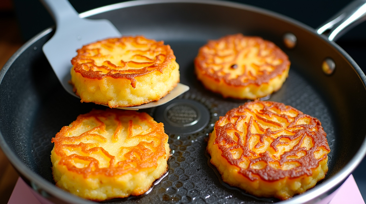 На хорошо разогретую сковороду с растительным маслом выкладывается картофельная масса, которую обжаривают в течение 3–5 минут на среднем огне. Затем массу перекладывают обратно в миску для остывания. После повторного нагрева сковороды, сформованный хашбраун обжаривается с обеих сторон около 3 минут, пока не образуется золотистая корочка. Важно не переворачивать слишком рано, чтобы не повредить структуру.