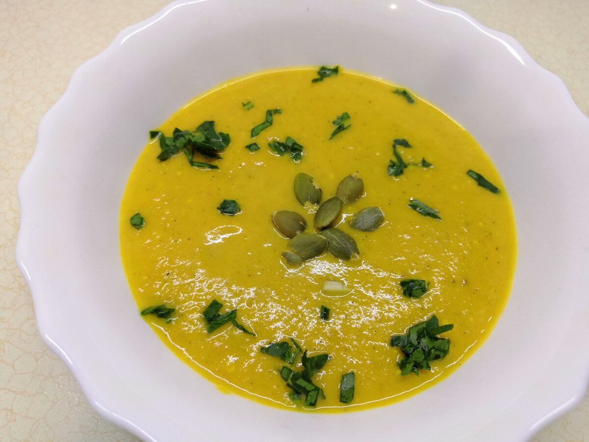 Готовый суп можно украсить свежей петрушкой и тыквенными семечками, чтобы сделать его не только вкусным, но и красивым, сообщает источник.