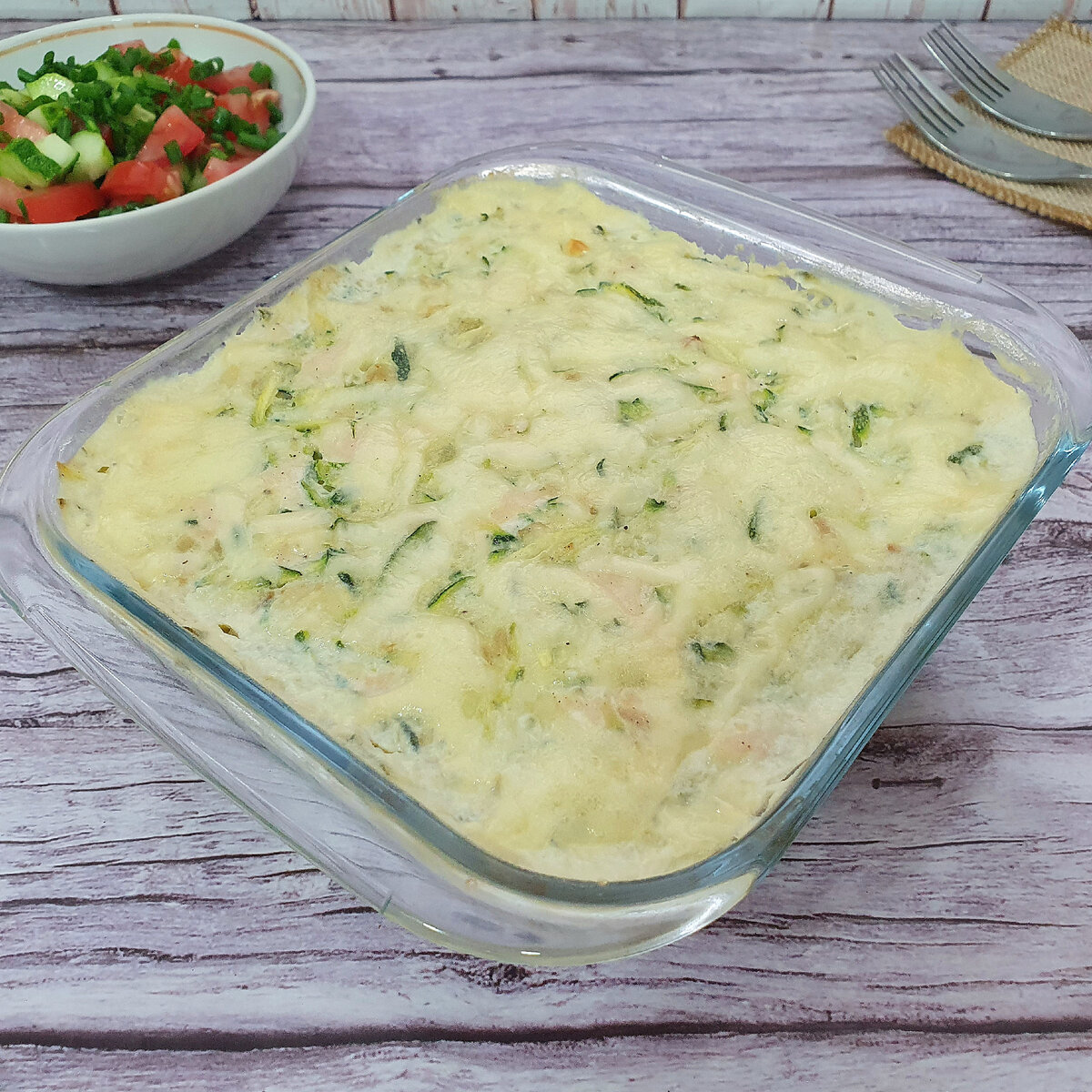 Эта запеканка из кабачков с курицей и сыром — отличный вариант для семейного обеда или ужина. Она простая в приготовлении и подойдет как в горячем, так и в холодном виде. Блюдо получается не только ароматным, но и диетическим, что особенно радует тех, кто следит за своим рационом.