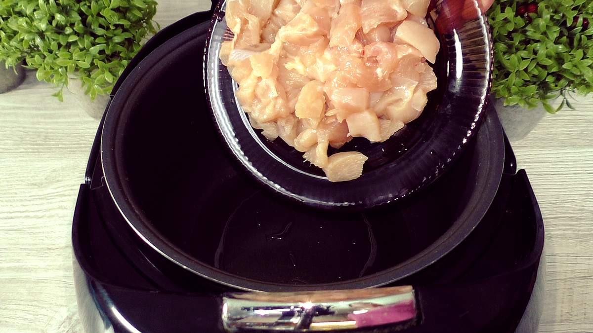 Для начала, если используется мясо на кости, рекомендуется заранее сварить бульон. Если планируется суп с куриной грудкой, то её помещают в мультиварку с небольшим количеством растительного масла и обжаривают до изменения цвета на режиме «жарка». Этот процесс можно провести и на плите, приготовление останется тем же.
