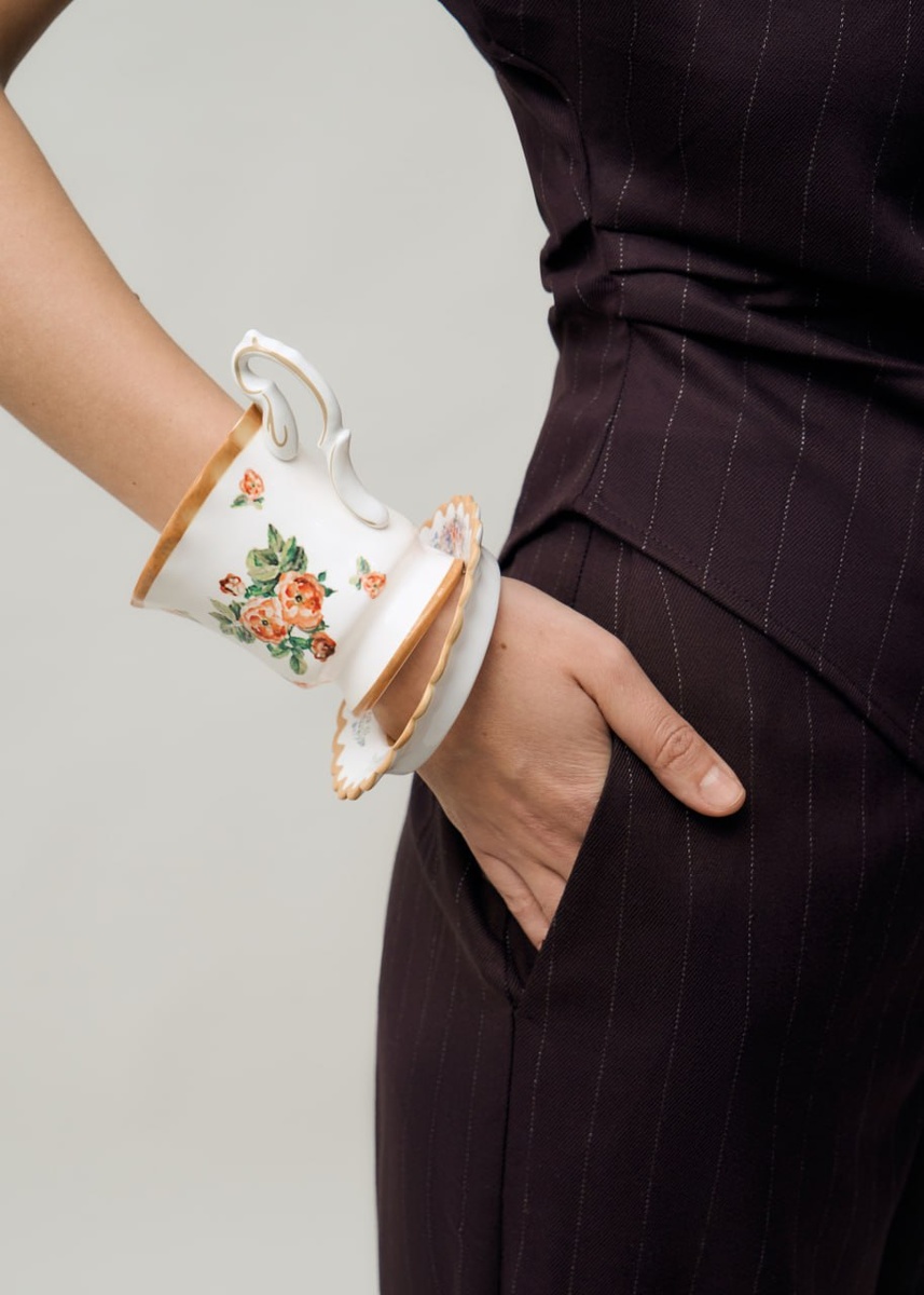 Бренд Moschino порадовал своих поклонников новым креативным дизайном: теперь в коллекции появились браслеты в форме чайной чашки и блюдца. Первый из них, выполненный в виде манжеты с трогательным изображением роз, оценивается в 50,000 рублей. Второй - стильный браслет-обод без застежки, напоминающий нежное блюдце, стоит около 40,000 рублей.