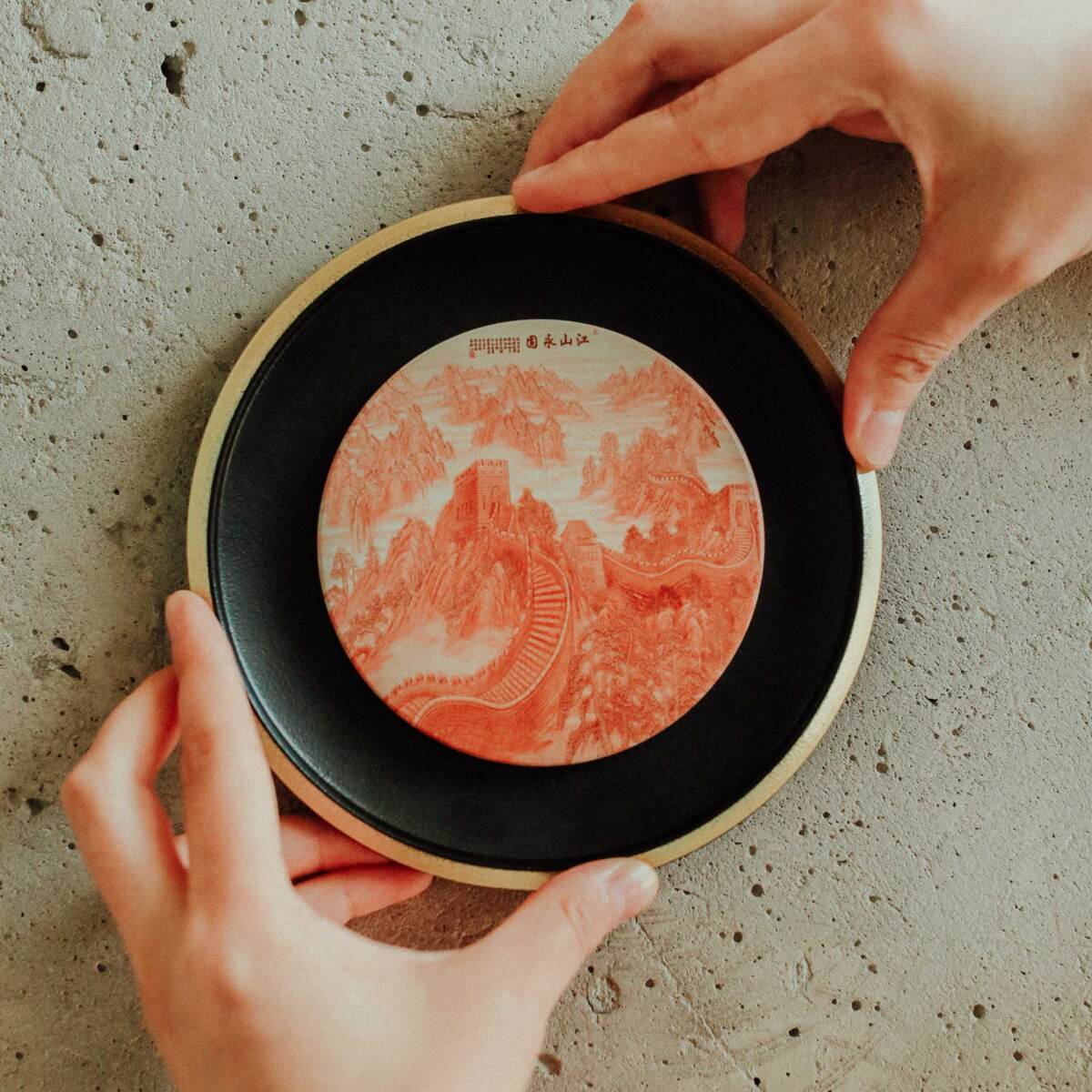 Хучэн в переводе означает «опора для чайника». Этот специальный аксессуар предназначен для размещения чайника или гайвани. Он аккумулирует капли воды, защищая стол от влаги и подчеркивая красоту главного предмета чайной церемонии.