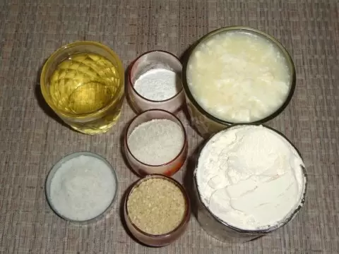 Подготовьте все ингредиенты, чтобы ничего не забыть. Помните, что кефир должен быть тёплым для более нежного теста.
