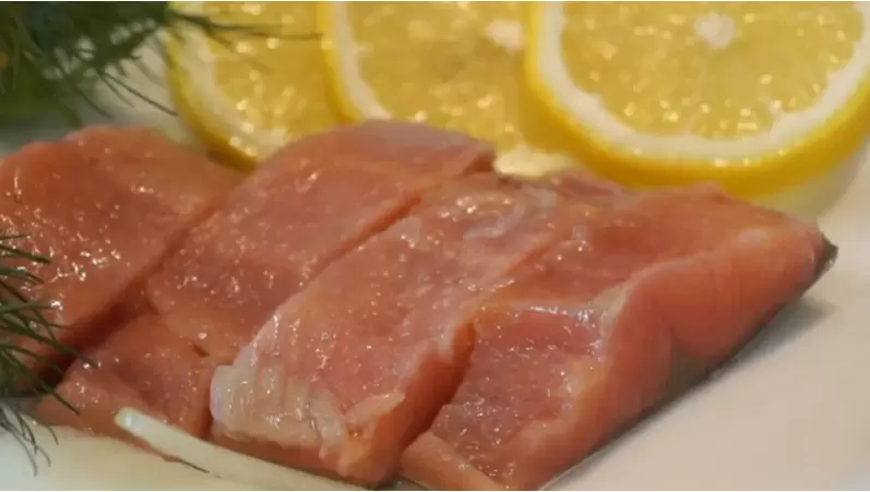 Кусочки горбуши помещаются в рассол так, чтобы они были полностью покрыты жидкостью. Время маринования — ровно 10 минут. Увлекаться не рекомендуется: если оставить на дольше, рыба может стать пересоленной. После истечения времени горбуша извлекается и выкладывается на бумажные полотенца для удаления лишней влаги.