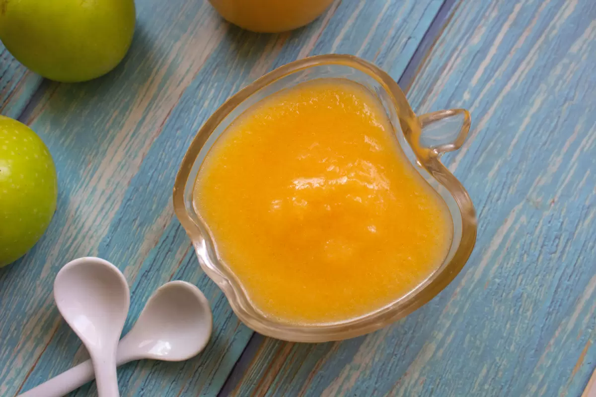2. Затем, с помощью блендера или сита, яблоко и морковь превращаются в однородную массу.