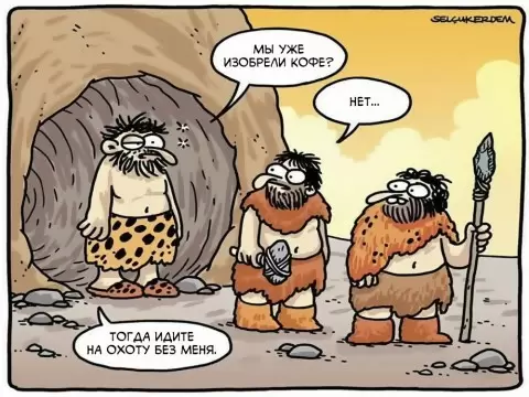 Турецкий художник Сельчук Эрдем, занимающийся карикатурами с 1990 года, успел поработать с рядом известных изданий. Его личный ресурс стал настоящим центром юмора в Турции. В одной из своих карикатур он решительно исследует становление кофе и его влияние на человечество.