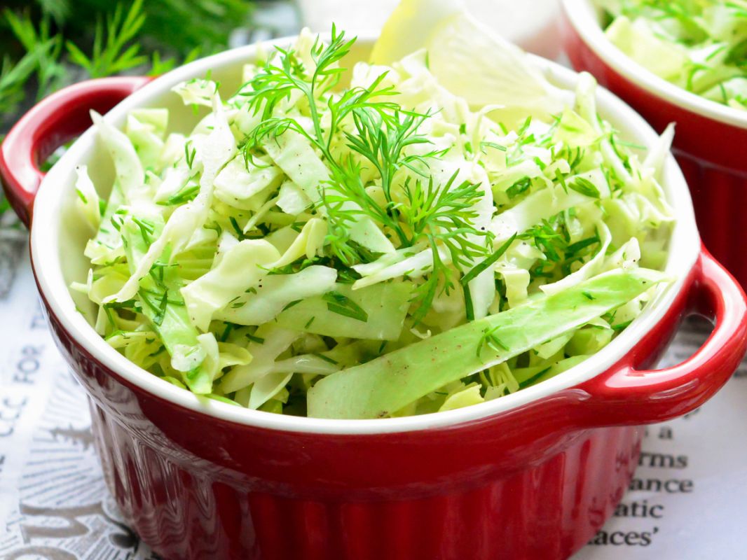 Теперь, в большой миске, соедините капусту, укроп, немного соли и чёрного перца по вкусу. Далее сбрызните всё лимонным соком и тщательно перемешайте. Затем добавьте мёд и оливковое масло — именно в таком порядке, чтобы раскрылся их вкус. Перемешайте ещё раз и оставьте салат настояться на 15–20 минут. За это время капуста впитает все ароматы, а вкус станет более насыщенным.