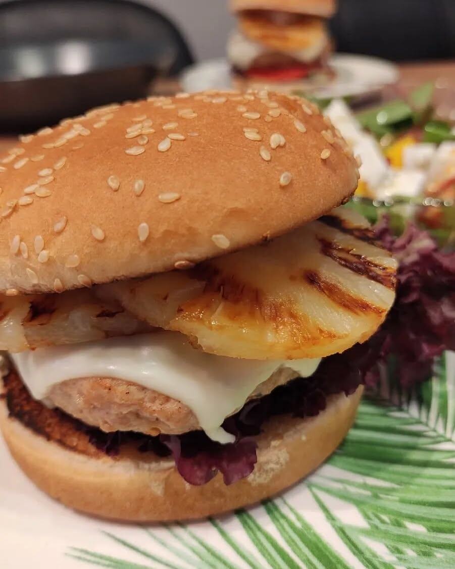 В выходной день утро начинается не с будильника, а с волшебного аромата кофе и дум о том, что бы такого подготовить, чтобы быстро и красиво удивить близких. И вот настал решающий момент — бургер. Но не обычный, а с необычным акцентом, который превращает его из простой булки с котлетой в настоящую кулинарную изюминку. Ананас! Да, тот сочный, сладковатый фрукт, слегка обжаренный на гриле, добавляет бургеру тропическую ноту, вызывая у ваших вкусовых рецепторов настоящий фейерверк. Этот бургер идеально подходит для тех случаев, когда хочется впечатлить гостей или сделать выходной день ярче. И поверьте, это блюдо того стоит!