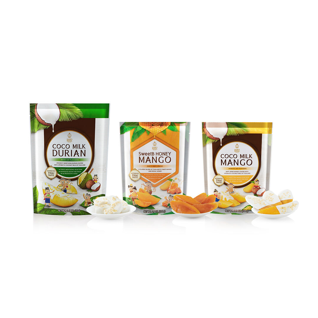 На первый взгляд, сушёные фрукты являются распространённым вариантом, но бренд Siam’s Royal делает из них нечто большее. Например, манго, покрытое кокосовым молоком. Эта комбинация сладкого манго и кремовой текстуры кокоса создаёт незабываемое впечатление, которое уносит вас обратно на пляж под солнцем. Если вы ищете более насыщенное сочетание, попробуйте SweetB Honey Mango — здесь мягкая текстура сушёного фрукта прекрасно гармонирует с натуральной сладостью мёда, что позволяет насладиться углублённым вкусом.