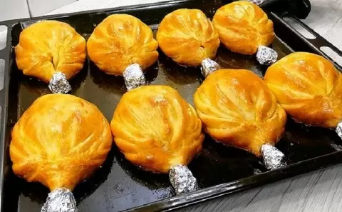 Выпекаются пирожки при температуре 180 °C до золотистого цвета — это не займет много времени. Советы по подаче: такие куриные ножки в тесте идеально подойдут как для праздничного ужина, так и для пикника. Блюдо станет настоящим хитом на любом застолье.