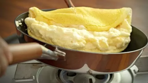 Чтобы достичь максимального объема, накройте сковороду крышкой во время готовки. Низкая температура позволит омлету медленно готовиться, увеличиваясь в объеме. Как видно, метод готовки требует терпения, но конечный результат того стоит!
