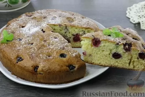 - Вишнёвый пирог на кефире. Этот пирог легко готовится и идеально сочетает нежное тесто с сочными вишнями. Ароматная сладость перекликается с легкой кислинкой, создавая удивительное угощение для всех любителей выпечки.