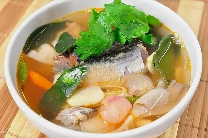 - Далее, в щи добавляются открытые консервированные рыбы, перец и лавровый лист. Бульон проваривается ещё 10–15 минут для богатства вкуса.