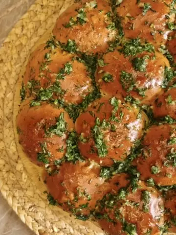 Разогрейте духовку до 190°C и отправьте пампушки на 20–25 минут, пока они не станут золотистыми. Параллельно приготовьте чесночную заливку: смешайте воду, масло, прессованный чеснок, укроп и щепотку соли. Как только пампушки будут готовы, щедро смажьте их ароматной заливкой. Они пропитаются невероятным вкусом укропа и чеснока.