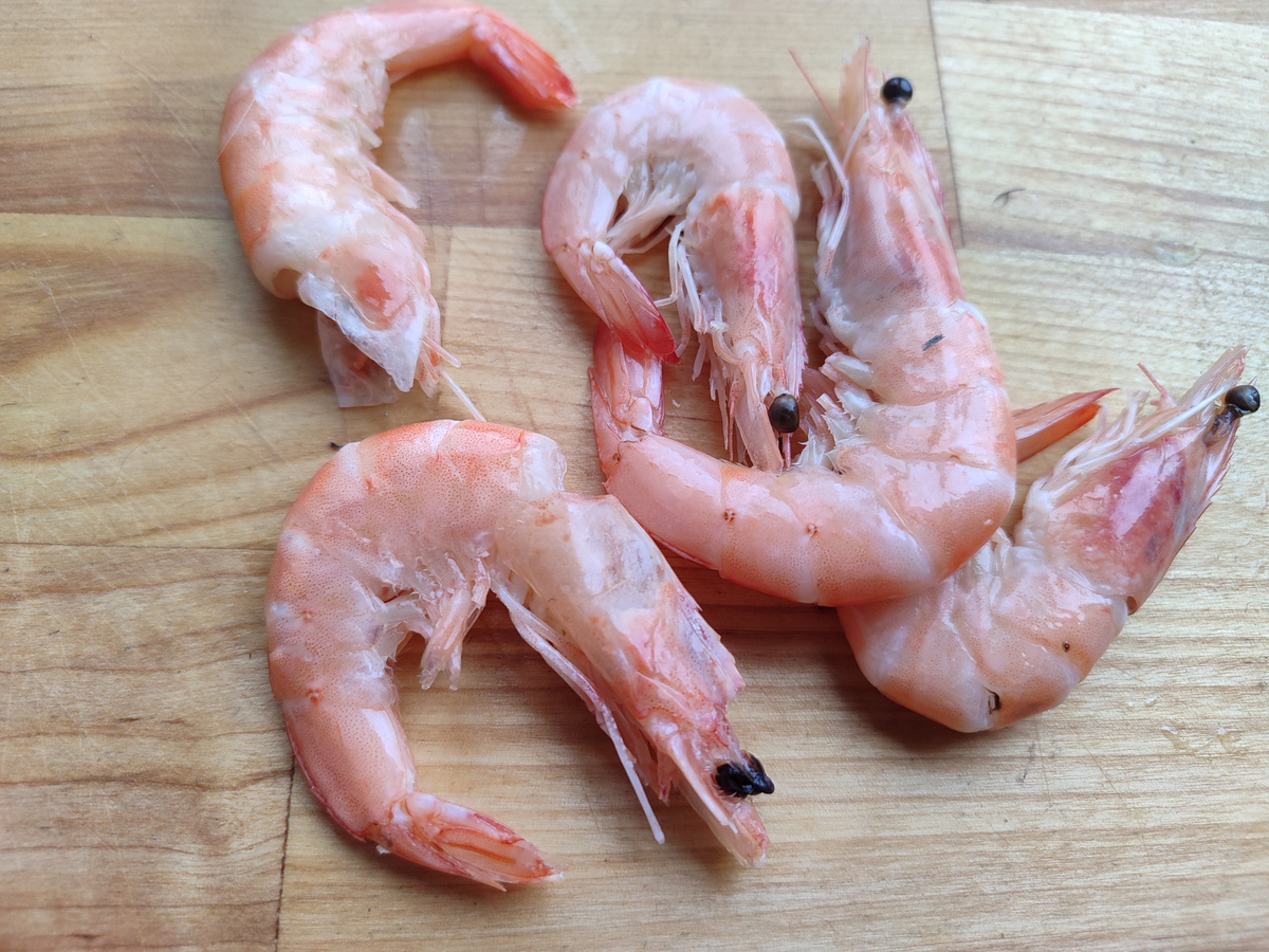Приготовление начинается с размораживания креветок. Их нужно очистить от панциря и удалить кишечную нитку. Для жарки разогревается сковорода с растительным маслом, в которую отправляются креветки. В то время как они слегка румянятся, овощи готовятся на другой сковороде.