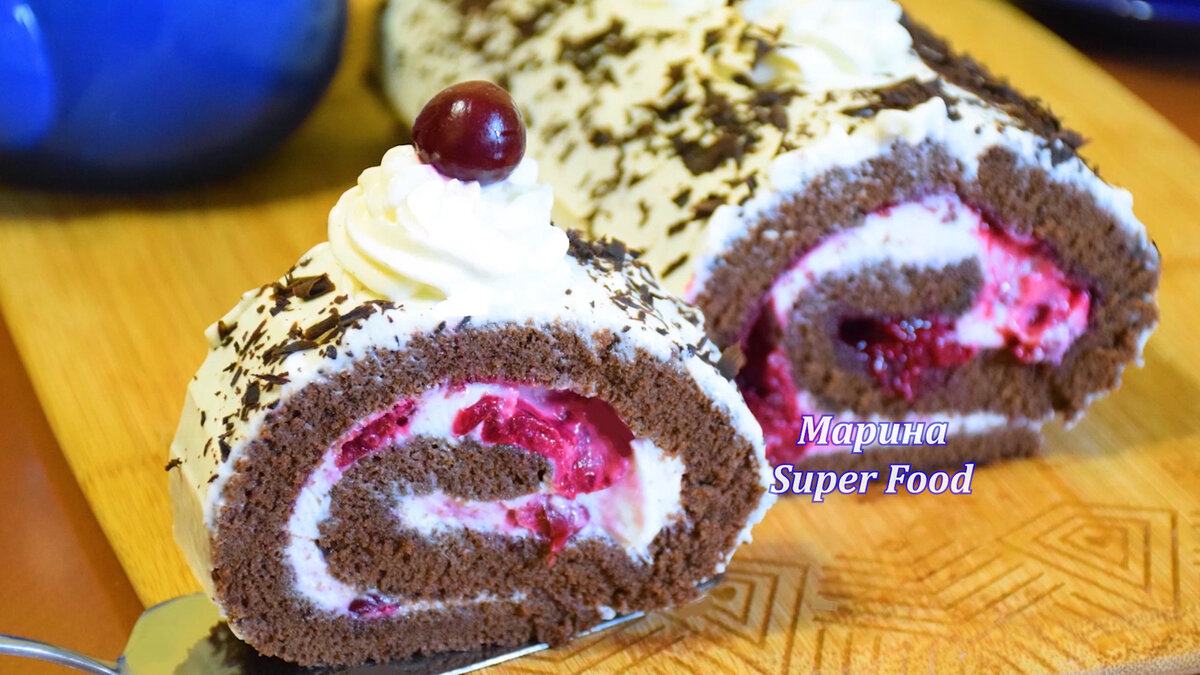 Нежный шоколадный рулет с вишней для вашего чаепития