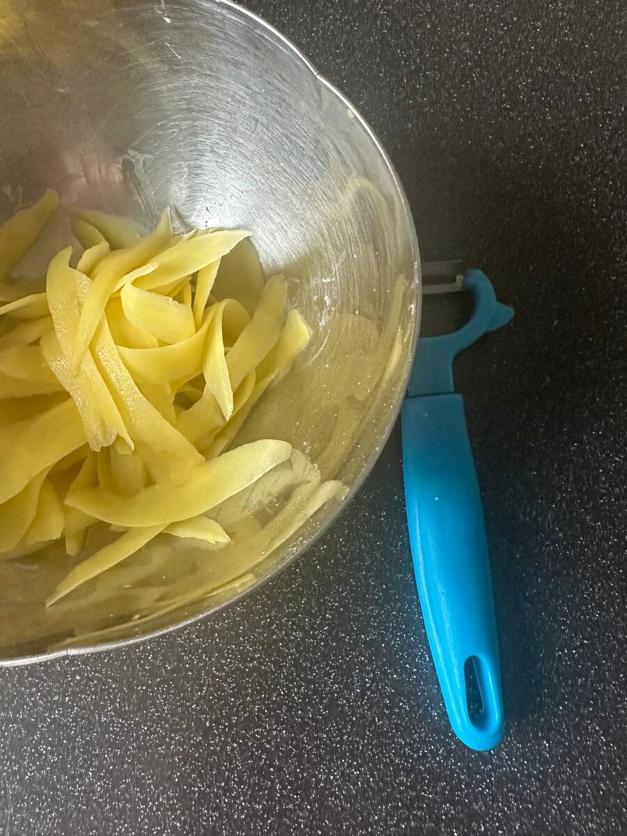 День второй продвижения к новым кулинарным вершинам. На этот раз внимание привлекает оригинальный картофельный блин с авокадо и сёмгой. Вдохновение пришло от блогера, который предлагает интересный способ нарезки картофеля с помощью ножа для очистки, и с этого началась кулинарная интерпретация.